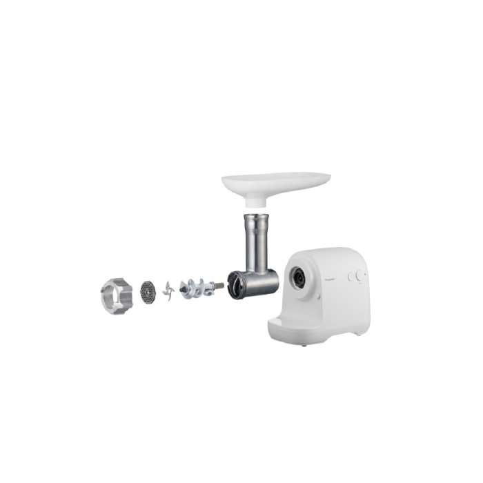 М'ясорубка Panasonic MK-GX1700WTQ - це потужний та функціональний кухонний прилад, призначений для подрібнення, перемелювання та змішування м'яса та інших інгредієнтів. Вона стане незамінним помічником в підготовці різноманітних страв та делікатесів. Поєднання спеціально розробленого леза й технології мотора Panasonic ще більше підвищує продуктивність подрібнення м’яса