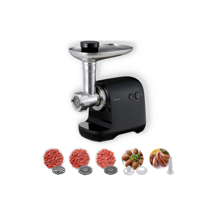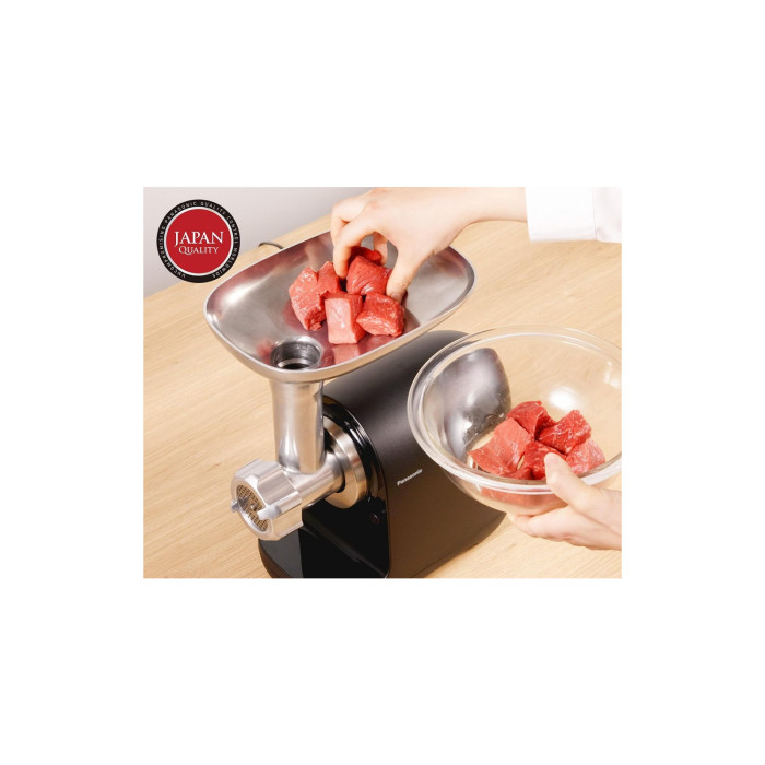 М'ясорубка Panasonic MK-GX1710KTQ - це потужний та функціональний кухонний прилад, призначений для подрібнення, перемелювання та змішування м'яса та інших інгредієнтів. Вона стане незамінним помічником в підготовці різноманітних страв та делікатесів. Поєднання спеціально розробленого леза й технології мотора Panasonic ще більше підвищує продуктивність подрібнення м’яса