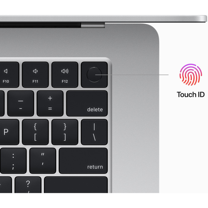 Зручна та тиха клавіатура Magic Keyboard з підсвічуванням оснащена повнорозмірними функціональними клавішами та сенсорним ідентифікатором Touch ID, який дозволяє швидко, легко та безпечно розблокувати комп'ютер Mac та входити у додатки та на сайти – і все це одним дотиком пальця.