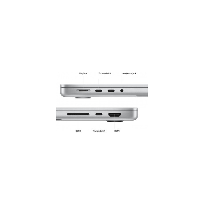 Слот для карт SDXC дає змогу переносити фото й відео. Підключайтеся до дисплеїв із портом HDMI, який тепер підтримує роздільну здатність до 8K. Підключайте аксесуари та додаткові дисплеї через три порти Thunderbolt 4. Завдяки Wi‑Fi 6E пропускна здатність збільшується вдвічі.