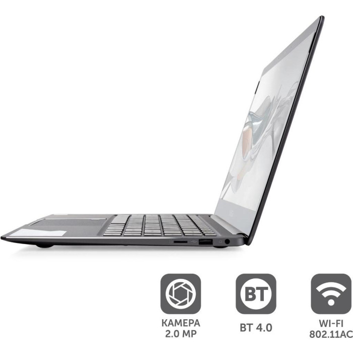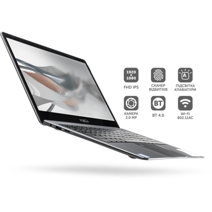 Ноутбук Vinga Iron S140 (S140-P50464G) - надійний комп'ютерний пристрій в металевому корпусі сірого кольору. Потрібен потужний лептоп для роботи? Тоді ця модель вам ідеально підійде! Діагональ монітора — 14". IPS екран якісно відображає відео з роздільною здатністю 1920 х 1080 (FullHD). Високопродуктивний і при цьому енергоефективний процесор Intel Pentium N5000 з частотою до 2.7 ГГц без збоїв виконує швидку обробку великих обсягів даних. Крім того, можливість експлуатувати вимогливе ПЗ забезпечується ефективним модулем оперативної пам'яті на 4 ГБ.