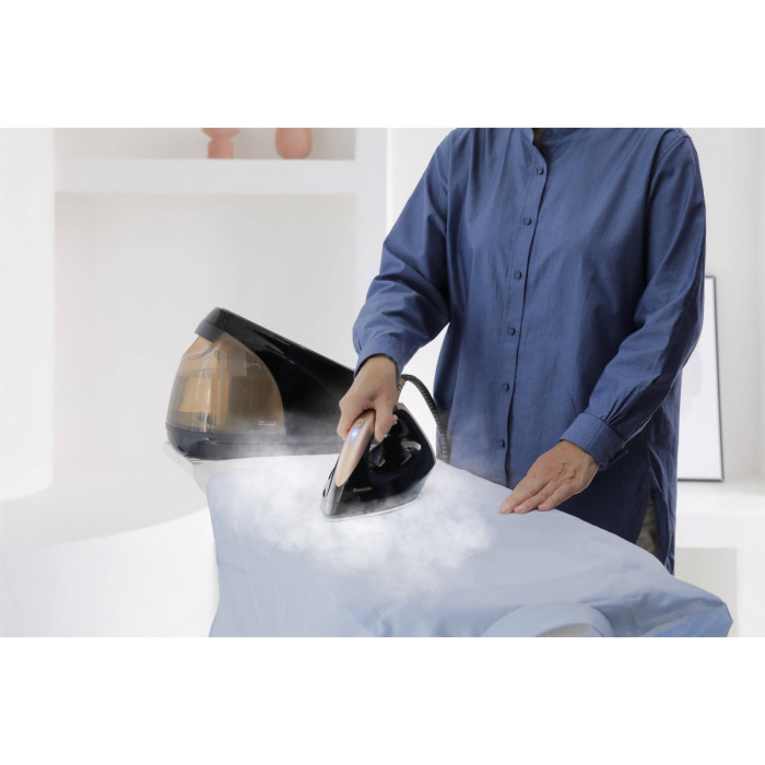Праска з парогенератором NI-GT500NTW від Panasonic потужністю 2400 Вт — це ідеальне поєднання найкращих характеристик і виняткової зручності. Модель працює швидше, ніж традиційна праска з парою, завдяки своїй потужній продуктивності пари