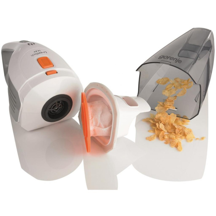 Ручний пилосос Gorenje MVC148FW, незважаючи на свої компактні розміри, є відмінним помічником у домашньому господарстві, особливо в сім'ї з маленькими дітьми. Gorenje MVC148FW дозволить швидко прибрати дрібне сміття і не вимагає багато місця для зберігання.