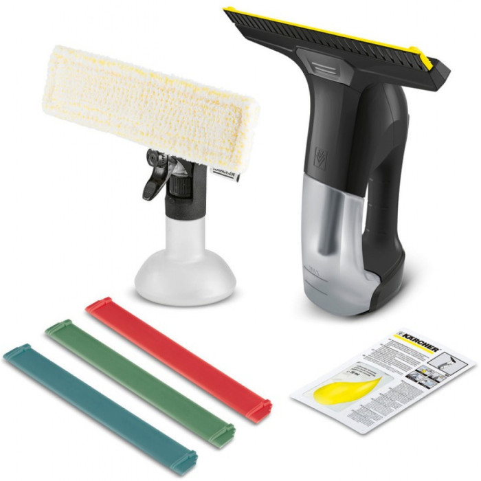 Ви також можете точно спланувати прибирання завдяки дисплею, на якому зображається час роботи у хвилинах. Як завжди, продумане поєднання пульверизатора та серветки з мікроволокна разом із функцією всмоктування гарантують надзвичайно ефективне очищення й блискучу чистоту вікон — без розводів і крапель. Крім того, ергономічний акумуляторний склоочисник Kärcher WV 6 Plus Multi Edition забезпечує особливо гігієнічне очищення вікон, оскільки немає прямого контакту з брудною водою.
