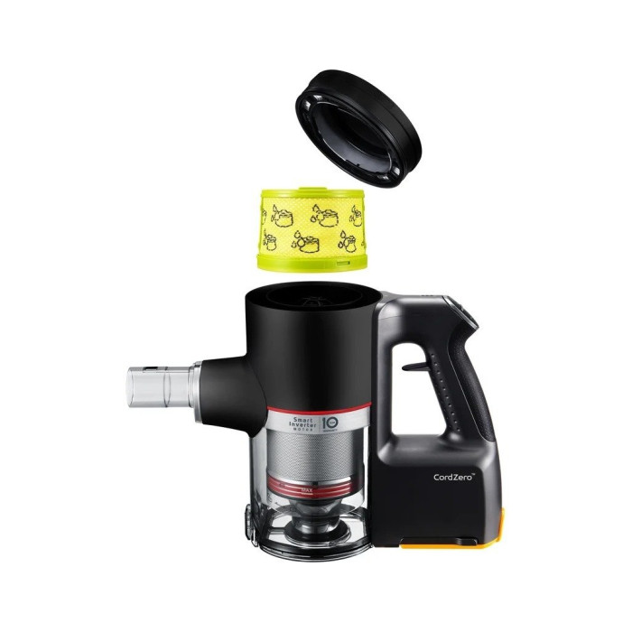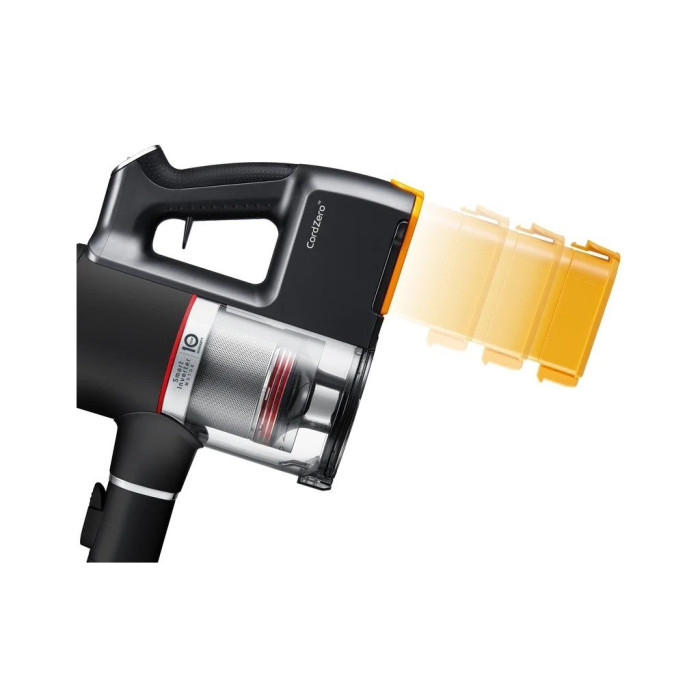 Тривалий заряд батареї, 3 опції розміщення зарядної бази, керування в один дотик. Інверторний двигун. Система фільтрації пилу мультициклон. Максимальний час роботи - 40 хв.