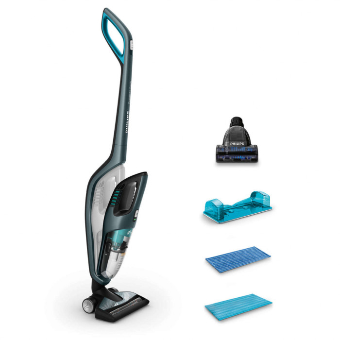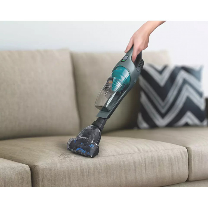 Пилосос Philips FC6409/01 відноситься до бездротових акумуляторних моделей, які відмінно показали себе в щоденному побуті. Його мотор працює із застосуванням циклонічної технології PowerCyclone, яка передбачає подачу потоків повітря за спеціальною траєкторією, за рахунок чого сміття ефективно всмоктується всередину і прибивається до стінок контейнера. Прискорений прохід повітря по вигнутих каналах істотно підвищує ККД техніки.