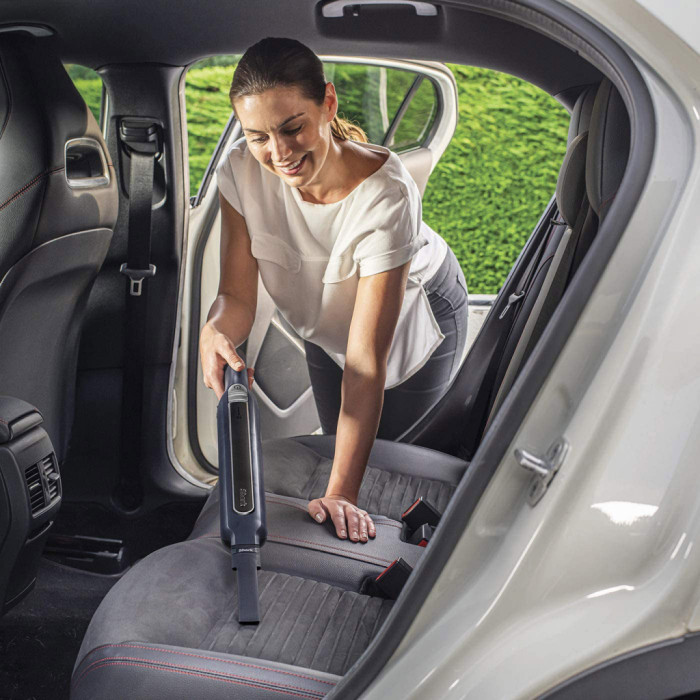 Універсальний і компактний пилосос 2-в-1. Завжди готовий до використання в невеликих повсякденних ситуаціях, він пропонує вам максимальний комфорт прибирання. Оснащений щіткою Anti Hair Wrap, що запобігає сплутуванню. Потужність всмоктування 70 Вт. Відокремте ручний пилосос від ручки, щоб швидко очистити всі поверхні, оббивку або інтер'єр вашого автомобіля. Міні-моторизована щітка ідеально підходить для прибирання пилу і шерсті тварин. Завдяки високопродуктивному двигуну, 2 потужностям та функції прискорення ця модель з двома батареями забезпечує до 32 хвилин автономної роботи. Постійна зарядка на підзарядній станції дозволяє використовувати прилад для щоденного прибирання.