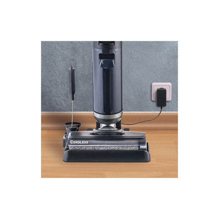 Пилосос бездротовий AQUA FLOORCLEANER CORDLESS PLUS, який забезпечує одночасний збір сухого сміття, вологе прибирання та ретельне просушування. Ідеально підходить для всіх твердих підлог, особливо для паркету та ламінату
