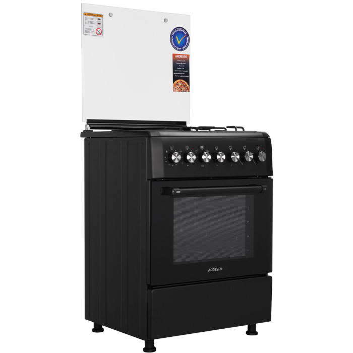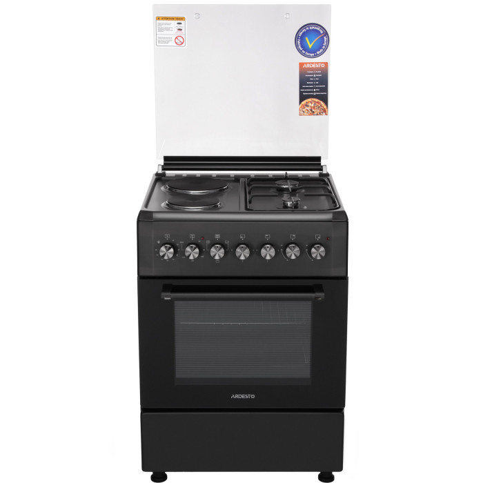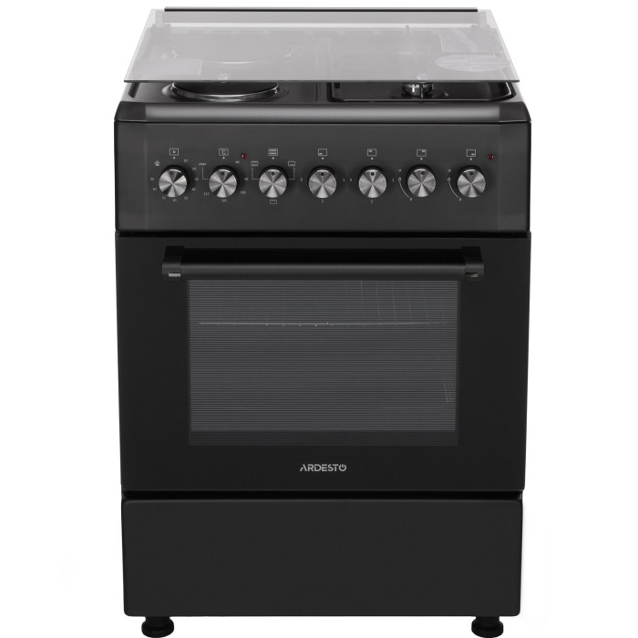 Комбінована плита ARDESTO зі змішаною варильною поверхнею є вдалим рішенням за умов періодичного припинення електропостачання. Якщо в оселі не проведено централізоване газопостачання, то за потреби плиту можна під’єднати до газового балона через форсунки NG (G20 – 13 мбар). На варильній поверхні чотири конфорки: дві електричні (180 мм та 145 мм) та два газові пальники з емальованою решіткою. Для безпеки користування газом передбачено газ-контроль. Також плита оснащена духовою шафою об’ємом 58 л, що вкрита емаллю легкого очищення