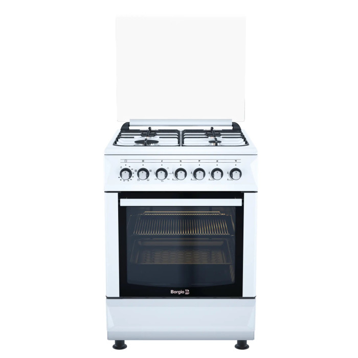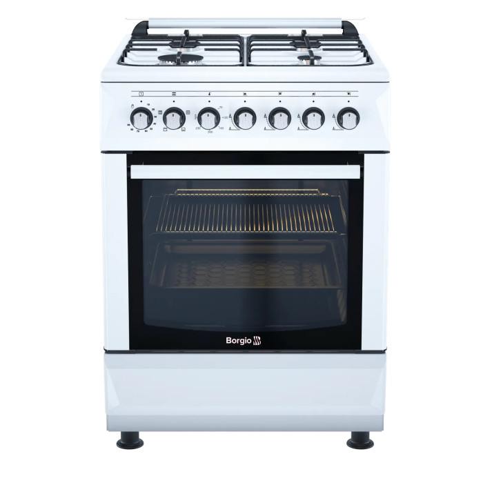 Комбінована плита BORGIO GE 640 W GCBLTF оснащується 4-ма газовими конфорками, а також електричною духовкою об'ємом 64 літри.