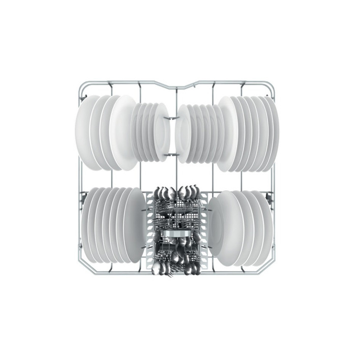 Внутрішній простір Hotpoint-Ariston HIS3010 ділиться на 2 великих короба, в яких можна помістити до 13 комплектів посуду. Маючи велику глибину, ящики вміщають в себе досить габаритні предмети, які всередині будуть органічно розташовуватися і не заважати більш дрібному посуду. Будь то тендітні скляні стакани або масивні комплектуючі до побутової техніки – чистим буде все.