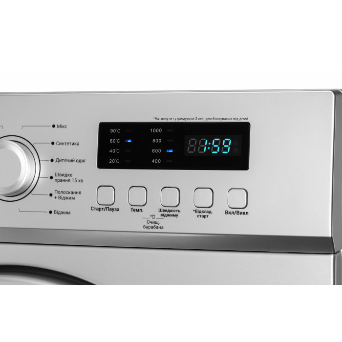 Від того, наскільки просто вам буде керувати пральною машиною, залежить і ваше ставлення до процесу прання. Ергономіку управління в Ardesto WMS-6109 виробник пропрацював на славу. Класичне рішення у вигляді поворотного диска вибору режимів і програм доповнюється кнопками додаткових опцій і налаштувань. Приємний екран з синіми символами і світлодіодні сині індикатори допоможуть правильно підібрати потрібні параметри і не плутатися в налаштуваннях. А в якості приємного бонусу є система блокування панелі управління від дітей.