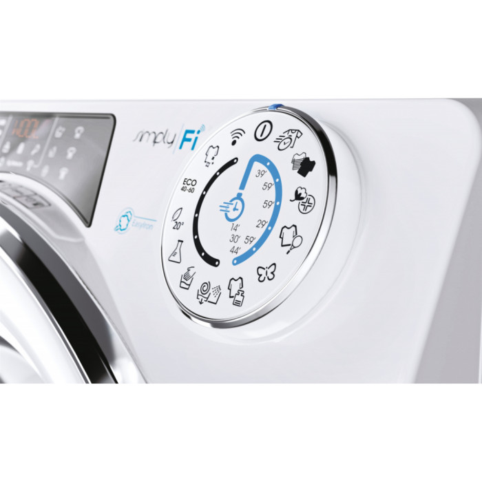 Пральну машину RapidÓ оснащено вбудованим модулем Wi-Fi для поліпшення вашого досвіду взаємодії з машиною. Поради щодо прання завжди під рукою. За допомогою застосунку Candy simply-Fi ви можете спілкуватись з RapidÓ та отримувати відповіді щодо ефективного прання, видалення плям і багато чого іншого.