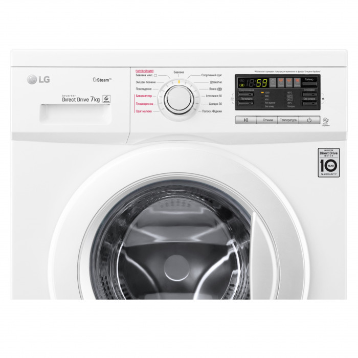 Система LG Inverter Direct Drive™ підвищує ефективність двигуна шляхом відмови від ременя і шківа, а також инверторной технології, яка допомагає знизити споживання електроенергії і забезпечує більшу надійність машини. Ця спрощена система також допомагає зменшити рівень шуму.