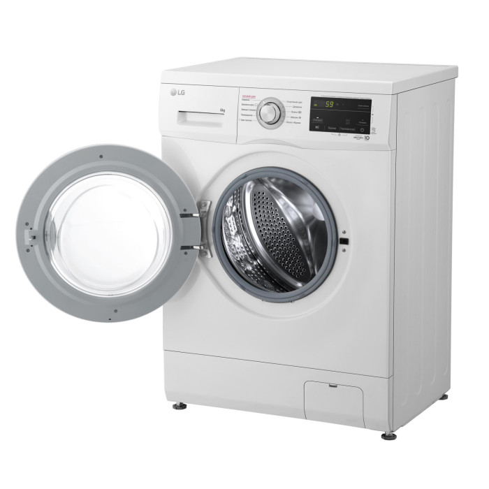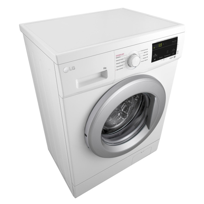 Пральна машина LG фронтальна з обсягом барабана 6 кг та швидкістю обертання 1200 об/хв, має клас енергоефективності A+++. Вона оснащена сучасним дисплеєм для зручного управління та функцією парового прання для ефективного очищення тканин. Також відзначається інверторним двигуном для більш ефективної роботи та має стильний дизайн