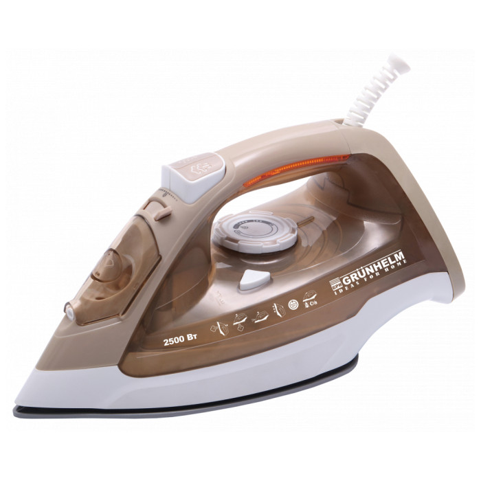 Grunhelm EI8892С оснащений системою особливого покриття його підошви керамічним покриттям, воно необхідне для відмінного ковзання по будь-якій тканині. Функція максимального відпарювання дозволить вам впоратися зі складками різної складності будь-яких видів тканини. Шнур живлення добре прикріплений до основи, він не плутатиметься і заважатиме процесу прасування, має довжину 1,8 м.