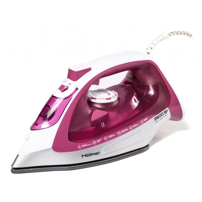 Праска Hölmer HIT-2640 для сухого прасування і з парою, має мощность 2600 Вт (час нагрівання max ~30 сек), паровий удар 140 г/хв, постійну подачу пара 40 г/хв. Тефлонове покриття підошви забезпечує легке ковзання по тканинах різних типів, розгладжуючи навіть найскладніші ділянки.