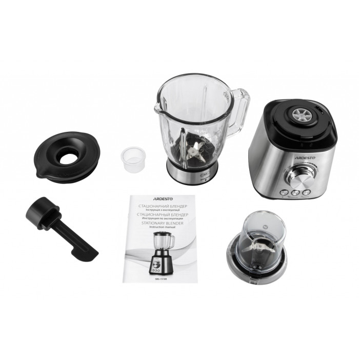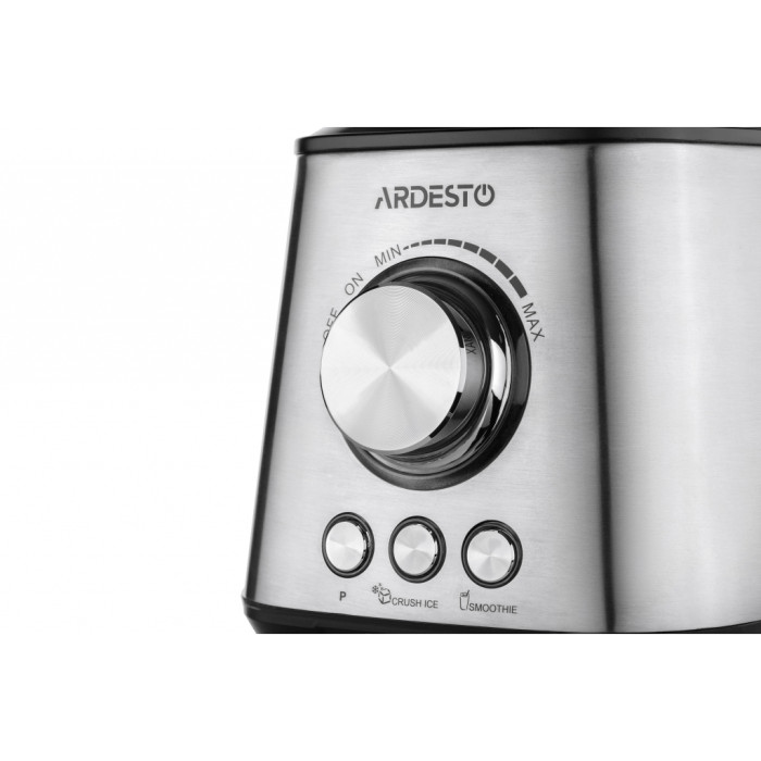 Стильный стационарный блендер серебряного цвета с черными элементами. Оснащен ножом из нержавеющей стали с восемью лезвиями и чашей, которая поддерживает температуру до 60/80˚С. Поможет в приготовлении самых разнообразных блюд: от десертов до супов-пюре и блинов.