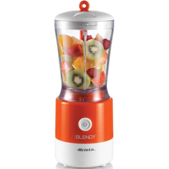 Блендер Ariete 0575 создан для тех, кто хочет получить универсальную многофункциональную машину для измельчения, смешивания, дробления. Он выглядит так, как должна выглядеть высококлассная техника. Корпус выполнен из прочного пластика, который способен выдержать самые высокие нагрузки. Стальные лезвия продуктивно выполняют свою работу, сохраняя остроту режущих элементов длительное время. Оранжево-белая окраска выглядит достаточно позитивно и уместна в стенах многих кухонь. Кнопка на корпусе позволит активировать измельчение. Крышка плотно закрывает конструкцию, не давая содержимому покинуть пределы емкости.