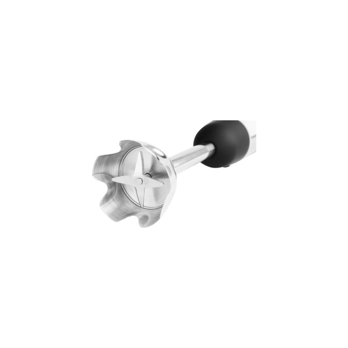 - Легкозаменяемые насадки: Венчик из нержавеющей стали, нож для резки и чаша объемом 500 мл
