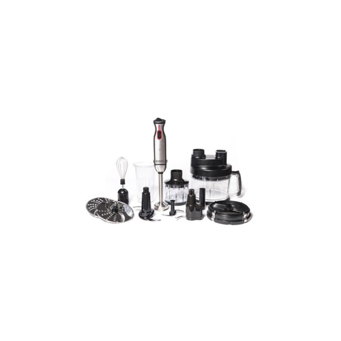 Блендерный набор EISEN EBSS-0110B — ваш незаменимый и универсальный помощник на кухне. Смешивайте, взбивайте и измельчайте ингредиенты до однородного состояния за считанные секунды. Модель обладает мощностью 1000 Вт, функцией защиты от перегрева и двумя скоростными режимами работы: «Turbo» — режим максимальной мощности и основной, с плавным регулированием скорости.