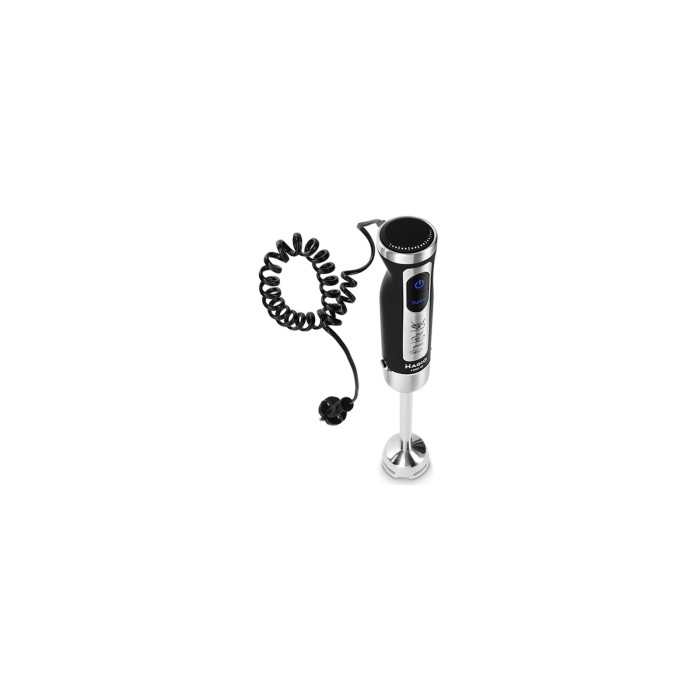 Блендер может работать на 19 плавно переключающихся скоростях. Переключатель находится на рукоятке прибора, что весьма удобно. В комплект входит венчик для взбивания и мини-измельчитель объёмом 500 мл. Эти свойства в сочетании с компактным дизайном делают блендер незаменимым помощником на вашей кухне.