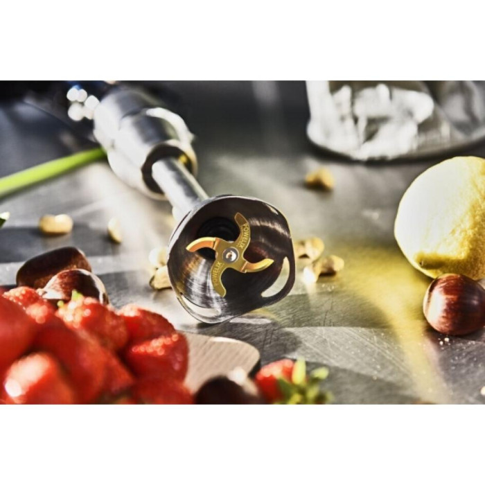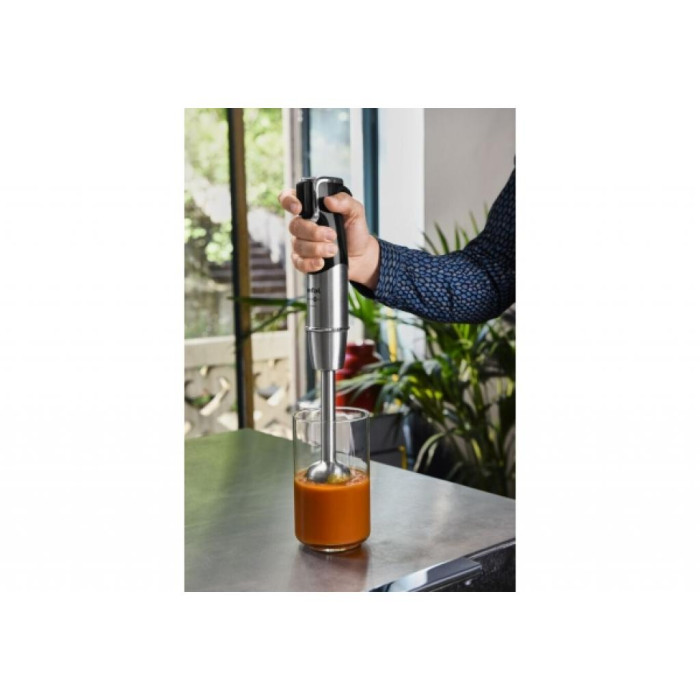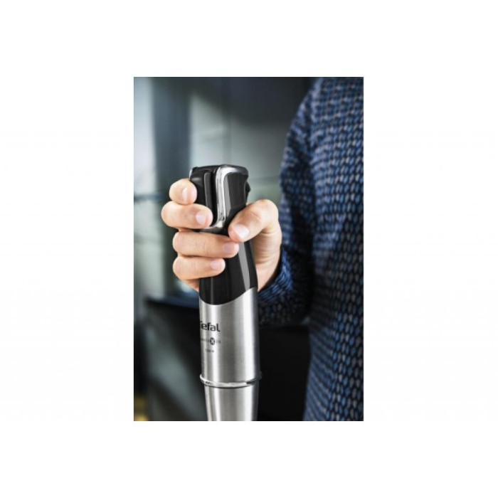 Tefal INFINY FORCE PRO 5в1 HB95LD38 оснащен технологией Powelix Life, которая обеспечивает титановое покрытие лезвий, таким образом они становятся на 30% эффективнее в работе и долговечнее в эксплуатации. Высокая точность взбивания обеспечена наличием многоскоростного триггера, который работает для получения любой необходимой текстуры. Мощный мотор позволит смешивать продукты разной твердости, текстуры, консистенции в кратчайшие сроки.