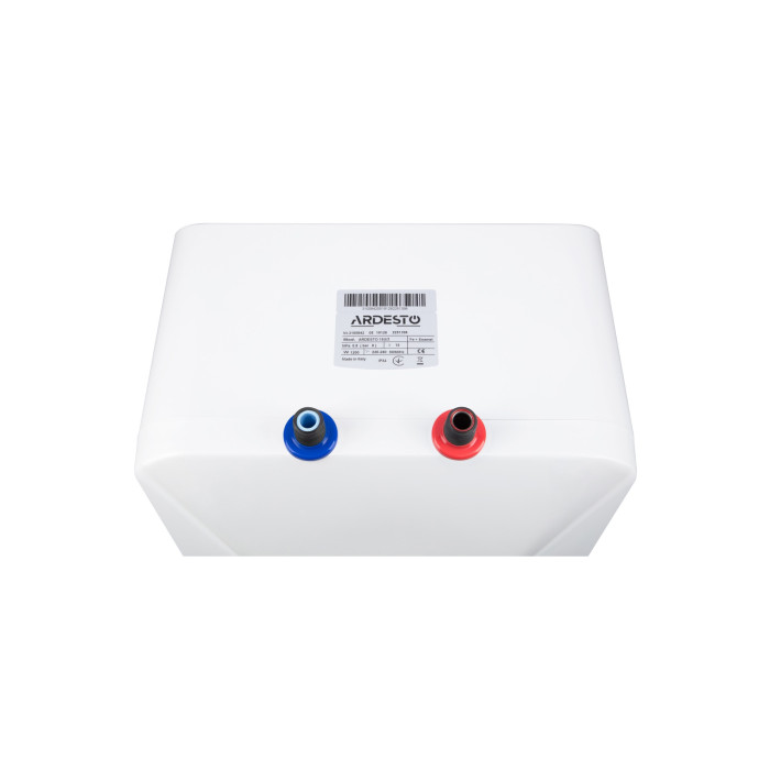 Ardesto EWH-15UMWMI использует мокрый ТЭН мощностью 1200 Вт и магниевый анод в качестве катализатора накипи. Эмалированный бак водонагревателя рассчитан на 15 литров. Максимальная температура воды составляет +80°, а для нагрева полного бака понадобится примерно 1 час. За автоматическое снижение давления в водонагревателе отвечает предохранительный клапан, который входит в комплект поставки.