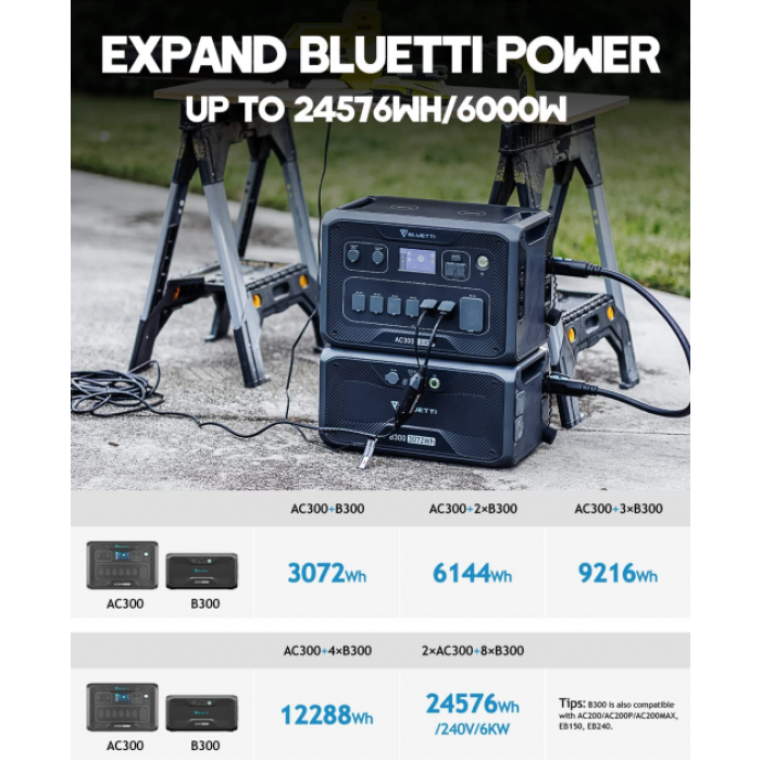 B300 послужит резервным источником питания или огромным павербанком дома во время экстренного отключения поставки электричества, а также пригодится в походе или кемпинге: для всех приборов семьи, чтобы вы могли наслаждаться отдыхом на природе.