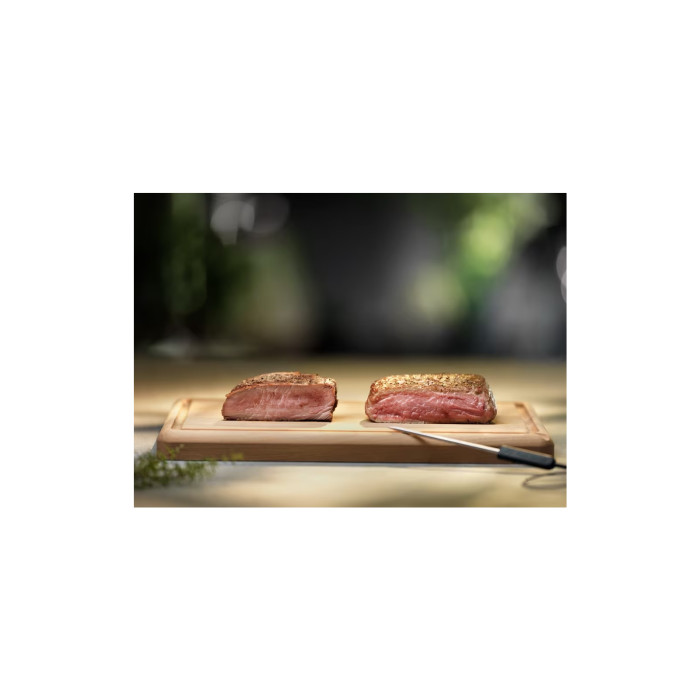 Термощуп обеспечит точность приготовления Благодаря термощупу вы сможете раз за разом добиваться идеальных результатов. Он позволяет следить за ходом приготовления, измеряя температуру внутри продукта. Он даже даст вам знать, когда пища доведена до требуемой температуры, и завершит приготовление.