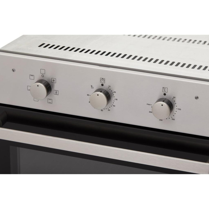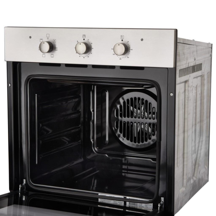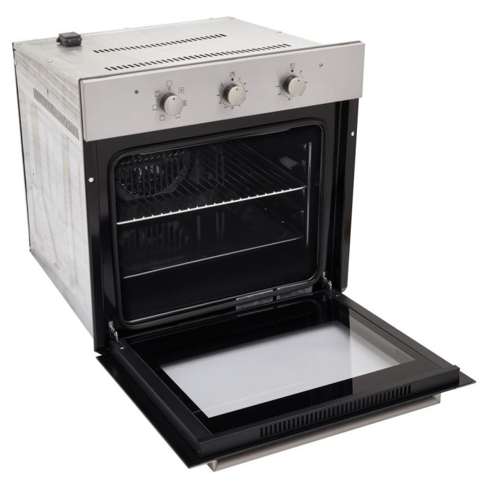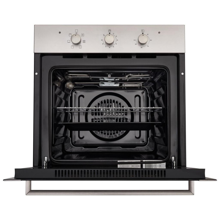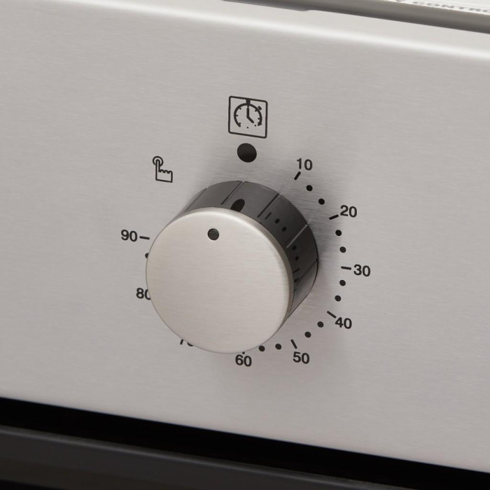 Дверца и панель управления духовки изготовлены из черного закаленного стекла — привлекательного снаружи и легкого в уходе долговечного материала. Духовой шкаф оборудован надежными, продуманно расположенными механическими ручками управления, а также механическим таймером с выключением духовки и сигналом окончания процесса приготовления.