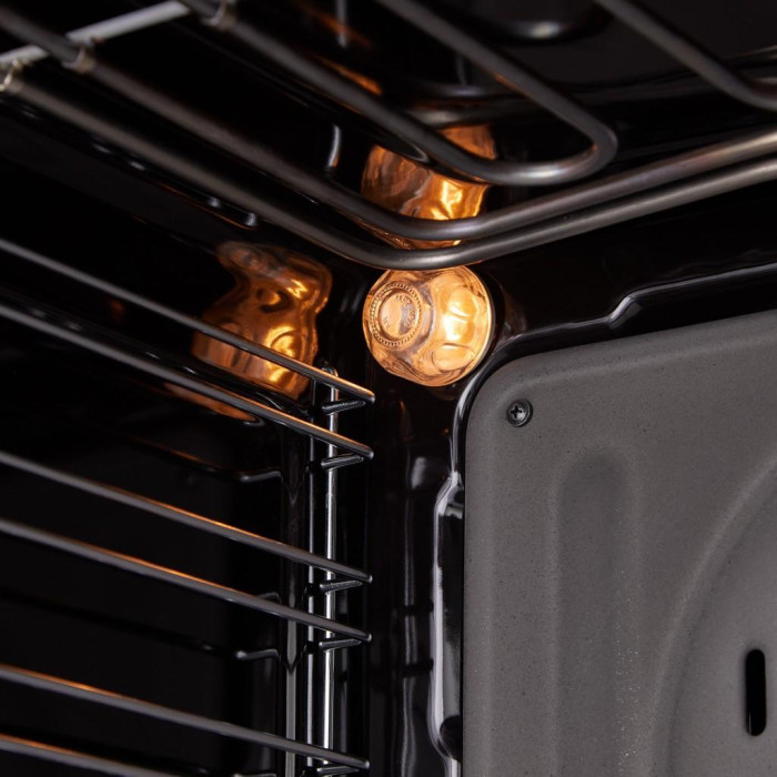 В наиболее труднодоступном месте — задней стенке духового шкафа работает каталитическая система очистки, которая не требует лишних усилий и очищается самостоятельно при работе печки. Благодаря уборке парой вы сможете ухаживать за стенками духового шкафа, которые покрыты эмалью легкой очистки, одним движением тряпки.