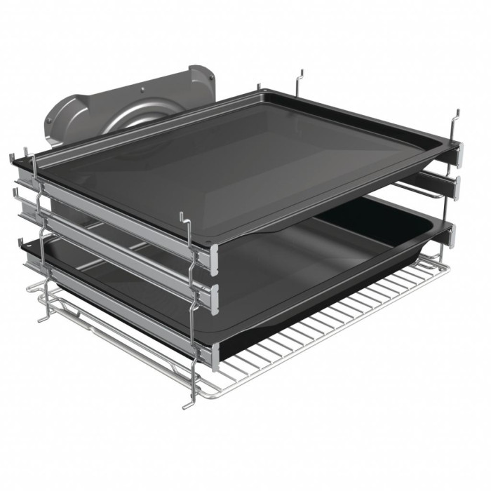 Духовка стала еще просторнее, а потолок более сводчатым, повторяя конструкцию традиционной дровяной печи. Воздух свободно циркулирует, обволакивает продукт со всех сторон, делая его нежным и сочным внутри и невероятно хрустящим снаружи. В камере объемом 71 литр с утопленными боковыми стенками воздух распределяется еще лучше, поэтому по всему пространству духовки поддерживается одинаковая температура, что обеспечивает равномерное пропекание. Соединение технологии MultiFlow 360° и сводчатой формы HomeMade помогло решить трудную задачу — обеспечить одновременное приготовление на пяти уровнях
