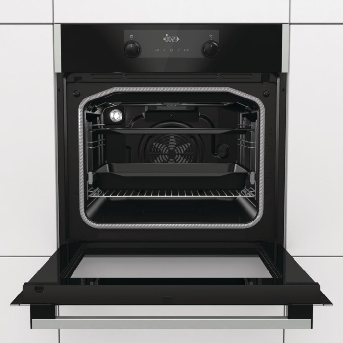 Новое поколение духовок Gorenje, скрывает пространство в верхней части. Увеличенная вместимость BigSpace – дает возможность использовать большие противни и готовить больше еды.