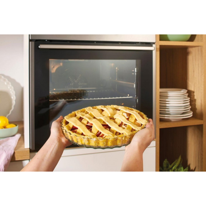 Духовой шкаф, который теперь еще более просторный, имеет овальную форму, создающую эффект традиционной дровяной печи. Это обеспечивает оптимальную циркуляцию воздуха, что, полностью обволакивая блюдо, делает его нежным и сочным внутри и невероятно хрустящим снаружи. В камере объемом 71 л с заглубленными боковыми стенками воздух распределяется еще лучше. Благодаря этому во всем духовом шкафу поддерживается одинаковая температура, что обеспечивает равномерное выпекание блюда. Специальное направление циркуляции воздуха создает профессиональные условия для приготовления пищи на одном или одновременно на нескольких уровнях духового шкафа.