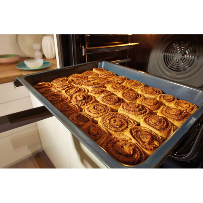 В более просторных духовках можно готовить большее количество пищи не только благодаря равномерной циркуляции воздуха на всех уровнях, но и благодаря широким 46-сантиметровым противням как в стандартных, так и в компактных духовках. Инновационные решения позволили расширить внутреннее пространство и полностью использовать ширину духовки. Теперь для каждого противня есть больше места, а благодаря новейшим технологиям блюда готовятся равномерно на всех уровнях.