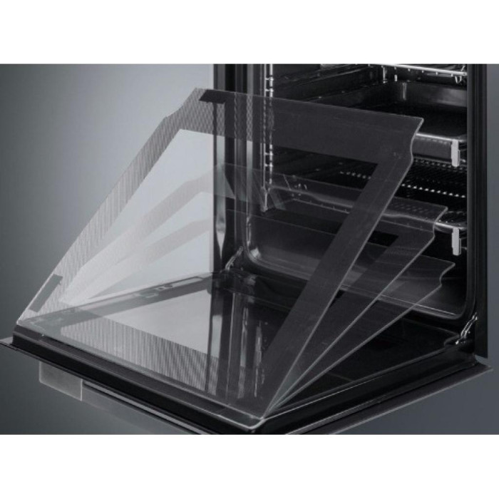 Все поверхности из нержавеющей стали имеют защитное покрытие от отпечатков пальцев. Благодаря этому кухня останется сияющей, а очистка будет простой, даже если вы прикасаетесь к духовке испачканными руками.