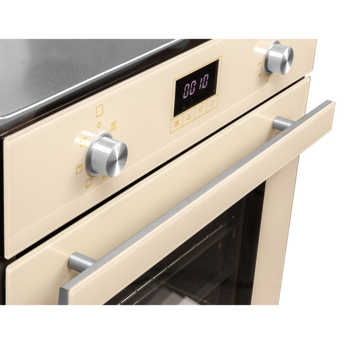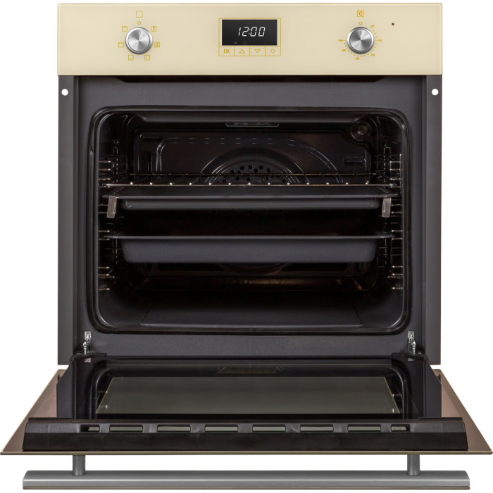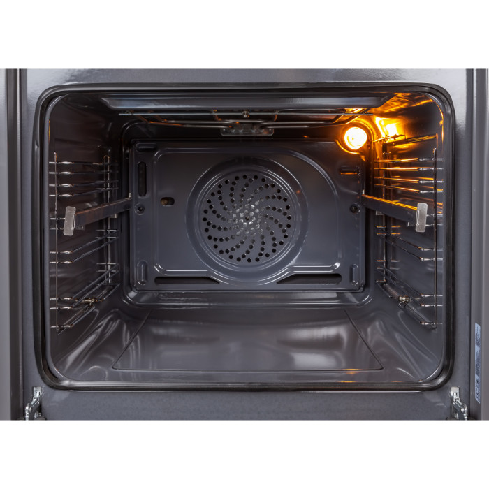 - Верхний + нижний нагревательные элементы (классический нагрев) и конвекция: в этом режиме одновременно работают и верхний и нижний нагревательные элементы, а конвекция обеспечивает более равномерное распространение тепла. Для приготовления любой выпечки, а также сушки фруктов и овощей на нескольких уровнях духовки.