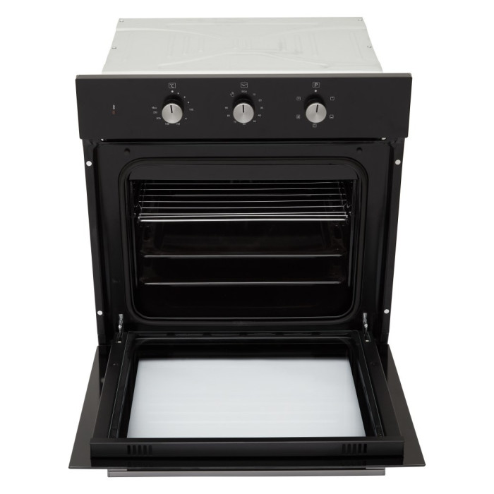 Для печи были выбраны надежные материалы: эмалированная сталь для панели управления и фасада, двойное закаленное стекло для дверей и алюминий для ручки. Благодаря корпусу универсального черного цвета, духовка прекрасно дополнит любой интерьер.