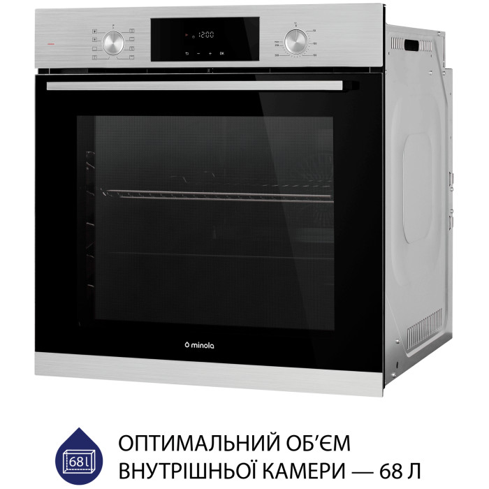 Духовой шкаф Minola EOD 6804 Platinum Gray создан, чтобы помочь в приготовлении вкусных блюд для вашей семьи и друзей. Она имеет внутреннюю камеру оптимального объема – 68 литров. Камера покрыта высококачественной эмалью Easy Clean, разработанной с заботой о чистоте.