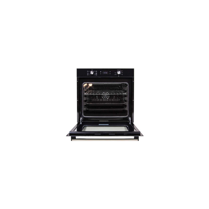 Современная и очень красивая электрическая духовка SIENA 6 TC (BK) – настоящая находка для кухонь в темных и контрастных цветах. Благодаря элегантному черному цвету фасада, а также красивому сенсорному дисплею, духовка имеет очень шикарный внешний вид. И, как говориться, выглядит «по-богатому».Фасад выполнен из прочного черного стекла, а внутренняя камера – из эмали легкой очистки. Поэтому уход за духовкой будет максимально простым и быстрым. При этом сама камера имеет объем целых 70 литров, что позволяет одновременно готовить два объемных блюда. Одно условия – блюда должны быть однородными.Управление выполнено таким образом, чтобы приготовление любимых блюд было комфортным и быстрым. Для этого Вам доступны удобные круглые ручки, которые утапливаются в фасад и сенсорный дисплей.