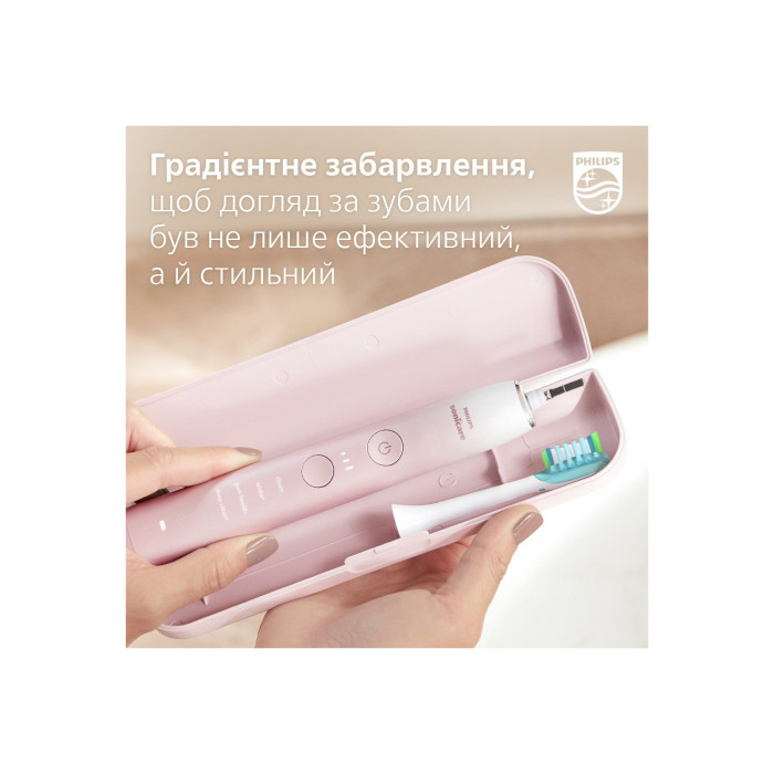 Щетки DiamondClean 9000 имеют градиентную окраску, чтобы чистка зубов была не только эффективной, но и стильной. Компактный футляр для путешествий имеет схожую цветовую гамму и позволит брать щетку с собой в любые поездки.