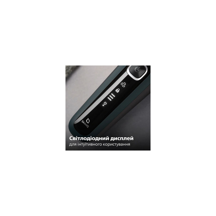 Интуитивный дисплей показывает соответствующую информацию, обеспечивая лучшее бритье. Этот интерфейс включает: 3-уровневые состояния батареи, советы по чистке и индикатор блокировки для транспортировки.