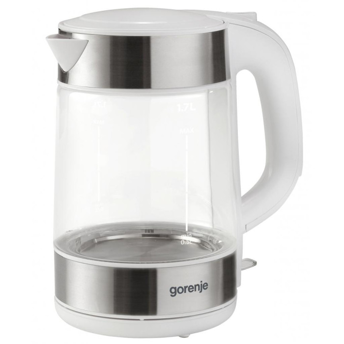Электрочайник Gorenje K17GWE – отличный помощник на вашей кухне. Благодаря большой мощности нагрева можно вскипятить 1,7 л воды за относительно короткий промежуток времени, что значительно экономит затраты на утренний подогрев воды, особенно, если вы опаздываете на работу. Модель собрана с использованием экологически чистых материалов – стекла и металла. Корпус выполнен полностью стеклянным, поэтому можно вполне обходиться без индикатора уровня воды и отслеживать наличие жидкости через прозрачную боковую стенку.