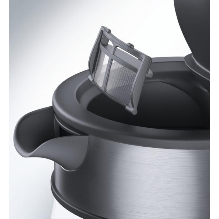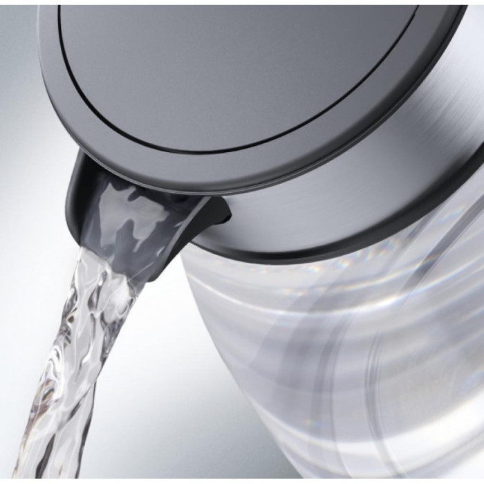 изготовлен из термостойкого экологически чистого премиум стекла Schott Duran, которое сохраняет полезные свойства воды. Вместимость этого мощного чайника составляет 1,7 литра, чего вполне достаточно для быстрого приготовления горячих напитков на семью или компанию друзей. В его конструкции предусмотрен специальный сетчатый съемный фильтр, который не позволяет частичкам накипи попадать в чашку с напитком. Чайник имеет скрытый дисковый нагревательный элемент, который облегчает уход и гораздо долговечней, чем спиральный. Поворотное основание позволяет устанавливать чайник на подставку в любом удобном для вас положении.