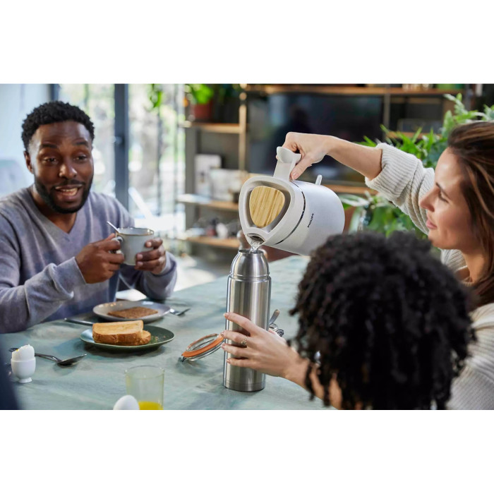 100%-ный биопластик производится из биологических и возобновляемых ресурсов, таких как подсолнечное масло. Использованное масло, оставшееся после приготовления пищи, и другие отходы растительного происхождения, собираются и перерабатываются экологически безопасным способом, чтобы сделать их пригодными для контакта с пищевыми продуктами. При этом чайник оснащен многофункциональной системой безопасности, не допускающей его работы без воды.