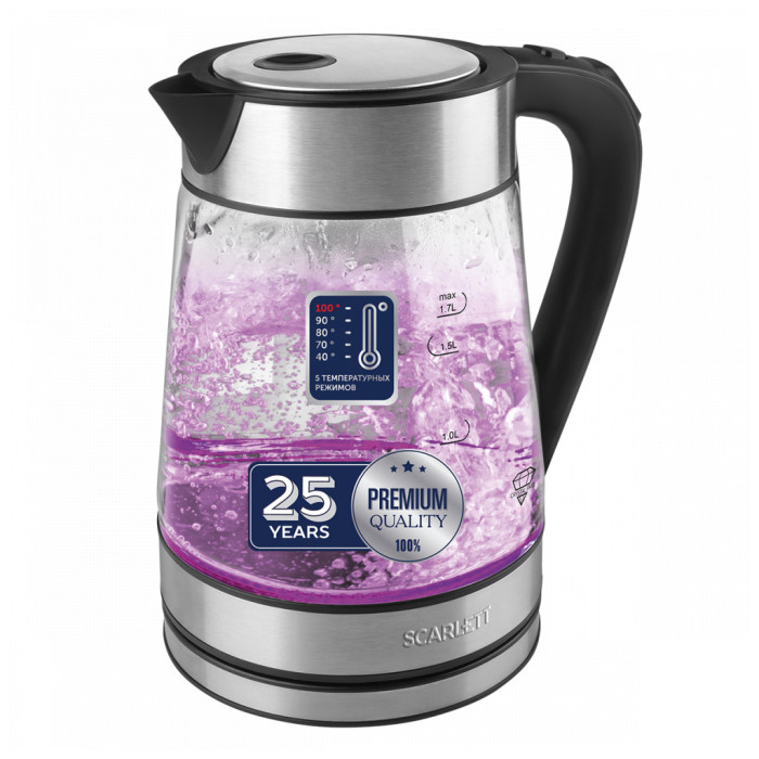 Каждый из температурных режимов обладает функцией поддержания температуры. Яркая, индивидуальная мультиподсветка для каждого из режимов облегчит пользование прибором. Открытие крышки в одно касание упрощает процесс эксплуатации чайника, а нейлоновый фильтр позаботится о качестве употребляемой воды. Удобство хранения электрошнура обеспечивает практичность и удобство использования даже на малогабаритных кухнях. Стильный дизайн с обилием металлических декораций станет удачным решением на кухне!