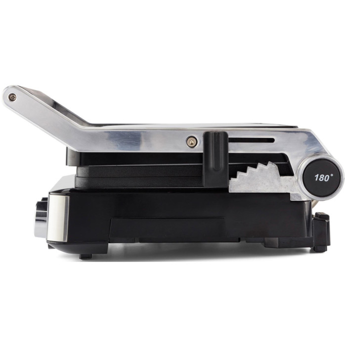 Притискна конструкція даного приладу зроблена таким чином, що ви з легкістю можете відрегулювати ступінь затиску інгредієнта в залежності від його висоти і структури. При цьому верхню кришку можна повністю відкинути таким чином, щоб вона була врівень з основною частиною. Це дасть можливість приготувати чудове барбекю.