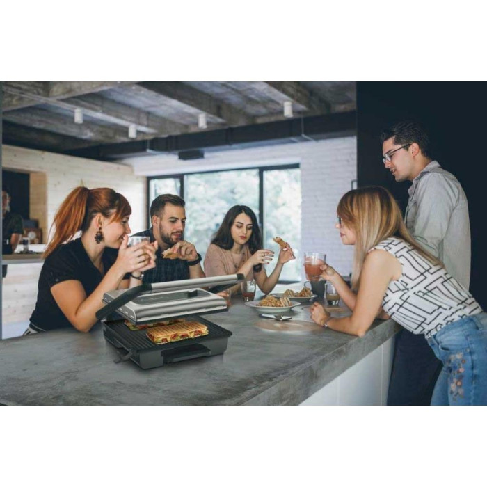 С помощью этого мощного многофункционального гриля вы можете насладиться хороше сделаным панини, и отлично приготовленной на гриле едой.