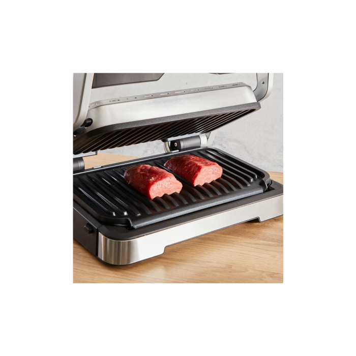 OptiGrill измеряет толщину продуктов с точностью до миллиметра, учитывает количество кусочков и автоматически регулирует время приготовления – для обеспечения идеальных результатов: от rare до well-done